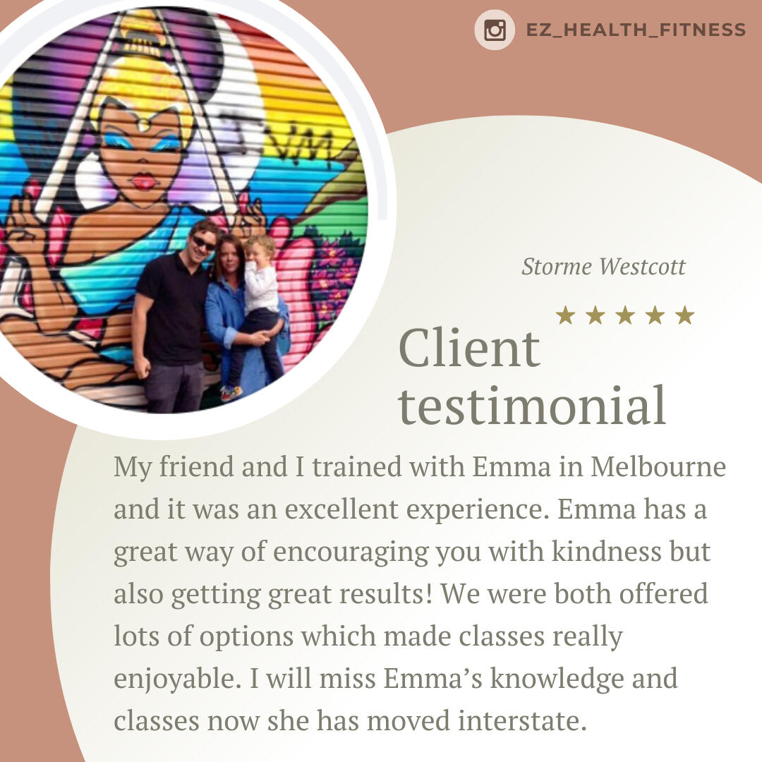 - April, 42Highly recommend Emma. She knows what women need when it comes to the best version of yourself. Emma helped me through a lot. She believed in me when I didn’t. She pushed me out of my comfort zone. With her guidance and push I was lifting weights I never thought I would. Emma is amazing. She will work no matter your fitness level and age.