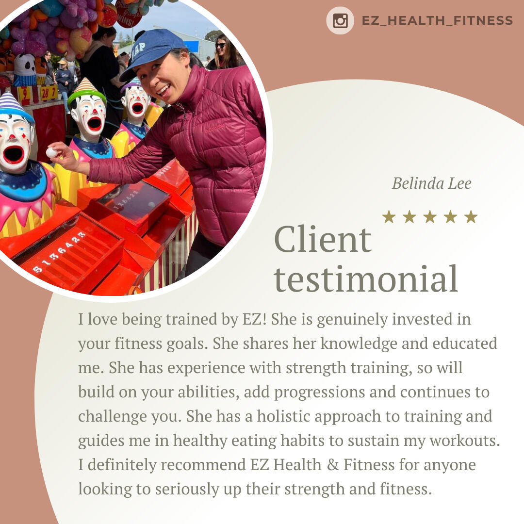 I'm Emma Zheng, a personal trainer with over 15 years of experience helping individuals in their 40s+ reclaim their bodies and live life to the fullest.My mission is to build strong individuals and a supportive community where we can grow and succeed together.My history into health and fitness started due to emotional eating, unhealthy habits, constant discomfort, and a lack of zest for life.Looking back, I'm sure I was suffering from some sort of a mental health issue.In 2010, my mum was diagnosed with an advanced form of breast cancer.Watching her endure months of chemotherapy was a wake-up call for me.Her strength in fighting the disease inspired me to start my own journey to improve my health, build a better lifestyle, and develop mental resilience.So, I hired my first trainer and joined a local CrossFit box.At the beginning, I couldn't even do a single push-up or run 200 meters without stopping to catch my breath.Now I can do strict ups, handstand push ups, deadlift 2x bodyweight, bench 80kgs and so much more.Being surrounded by a like-minded community inspired me to push past my limits and evolve into a better version of myself.The biggest lesson I learned is to cheer for yourself when no one else is.These days, I take my fitness outdoors, engaging in activities like hiking, surfing, climbing, and occasionally participating in local powerlifting competitions.I just turned 40 and feel stronger than I ever was in my 20s or 30s.I spend most of my time galavanting the world with my sister, sometimes engaging in adventures, like exploring cross-cultural experiences in Saudi Arabia or road-tripping along the coast of Costa Rica.If you’re going to embrace your 40s, 50s, and beyond, you might as well do it right!Three fun facts about me:
