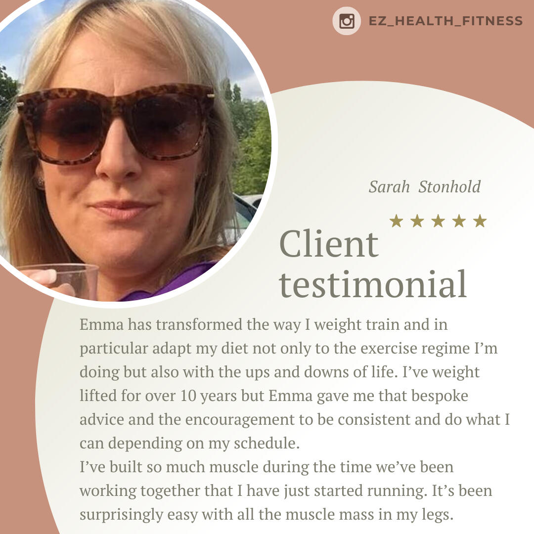– Ann, 44When Emma came into my life, amazing things began to happen. She consulted me on my fitness level, my diet, my goals and more importantly my self-esteem. She spent time understanding what I want and how I want to achieve this. If anyone is looking for a genuine PT who can support you in every way throughout your fitness journey. Highly recommended Emma, she is your person.