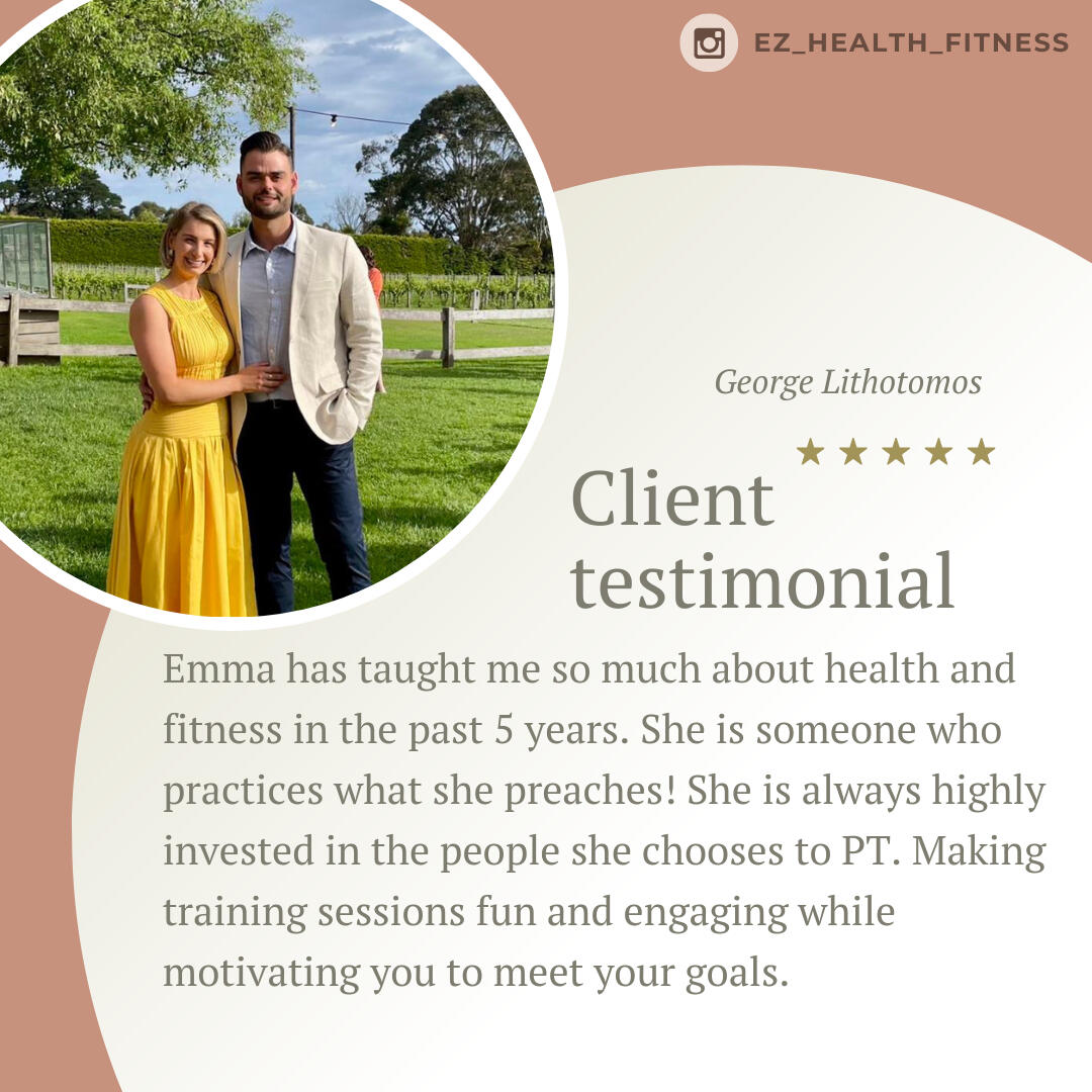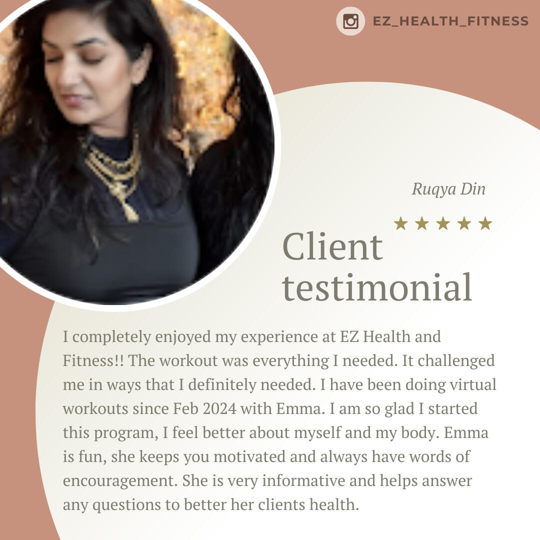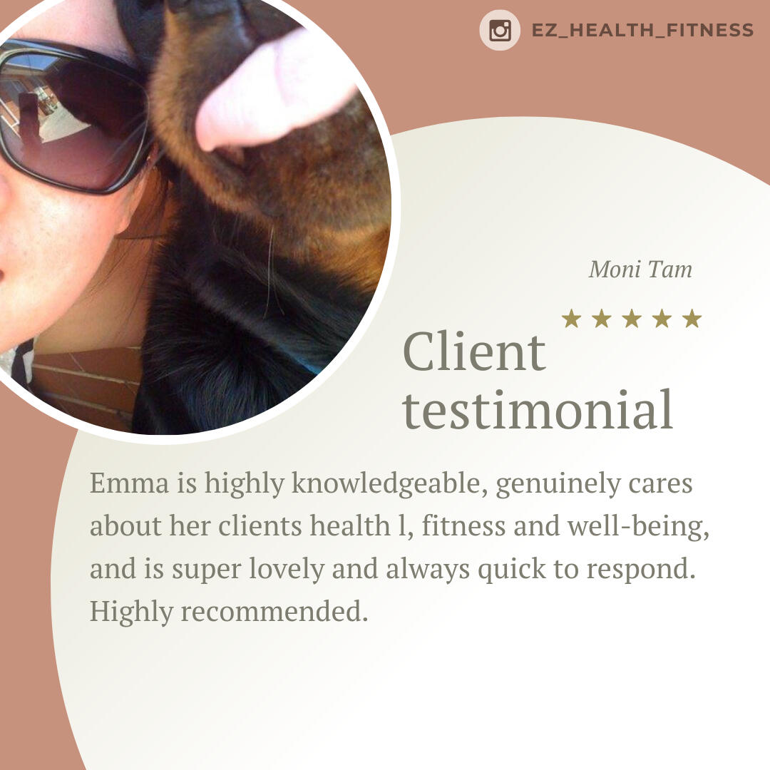 Emma is such a knowledgeable trainer. I really appreciate her attention to details when it comes to addressing my issues as a 47yo woman going through life changes. I am very fortunate to have had the opportunity to go through her program which covered proper nutrition, workout routines, and video check-ins. I have seen tremendous improvements in my nutrition and workouts from the lessons that I have learned. Thank you, Emma. I am forever grateful!