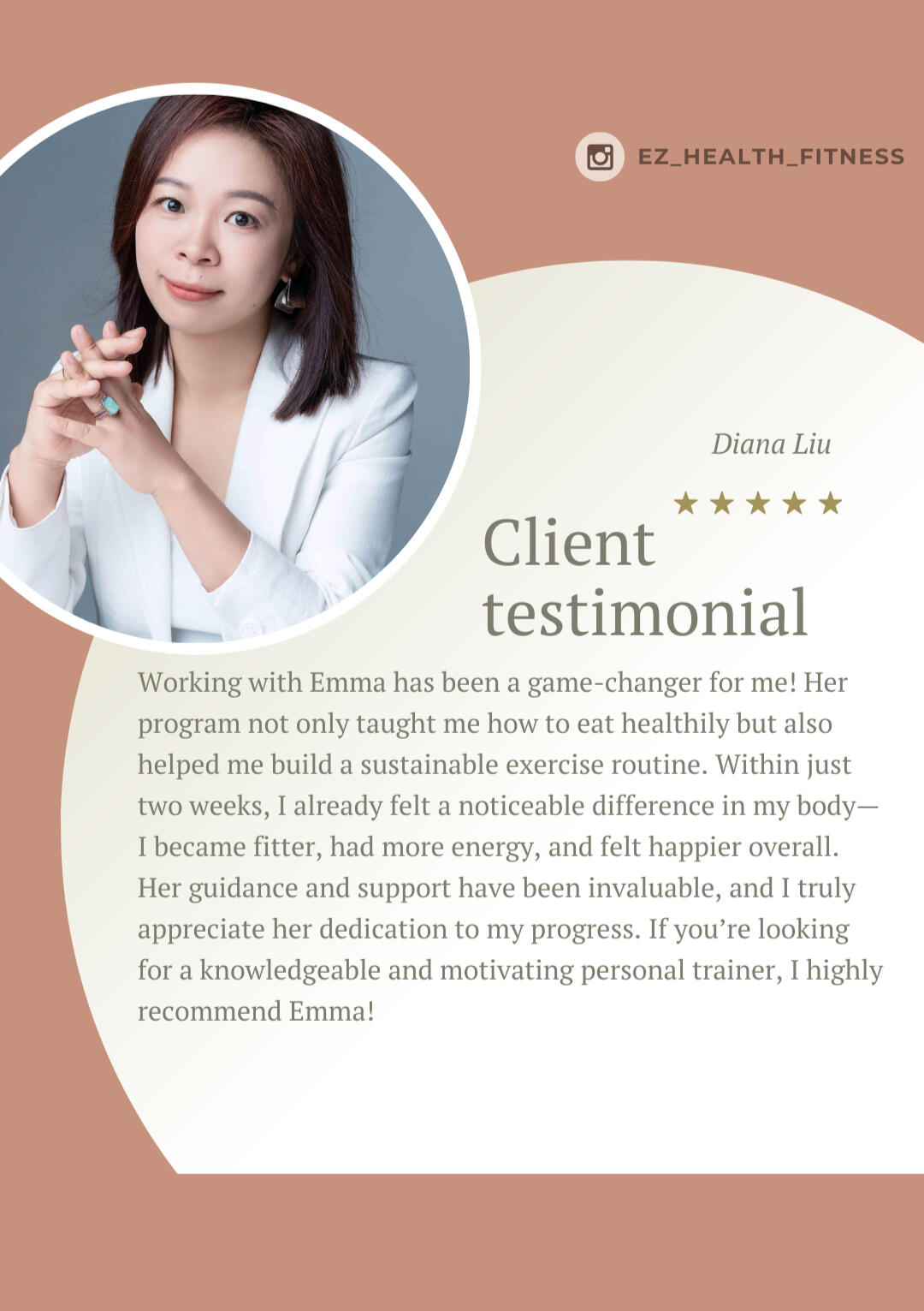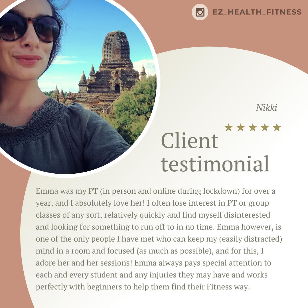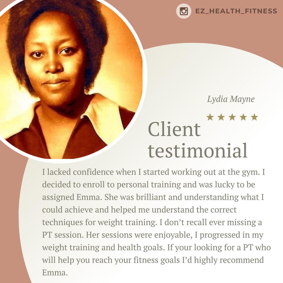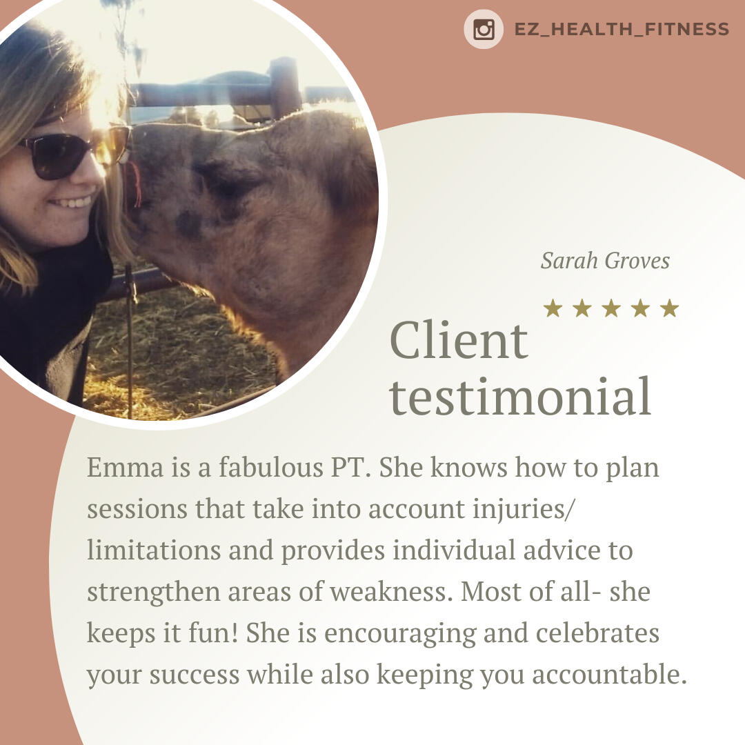Emma is such a knowledgeable trainer. I really appreciate her attention to details when it comes to addressing my issues as a 47yo woman going through life changes. I am very fortunate to have had the opportunity to go through her program which covered proper nutrition, workout routines, and video check-ins. I have seen tremendous improvements in my nutrition and workouts from the lessons that I have learned. Thank you, Emma. I am forever grateful!